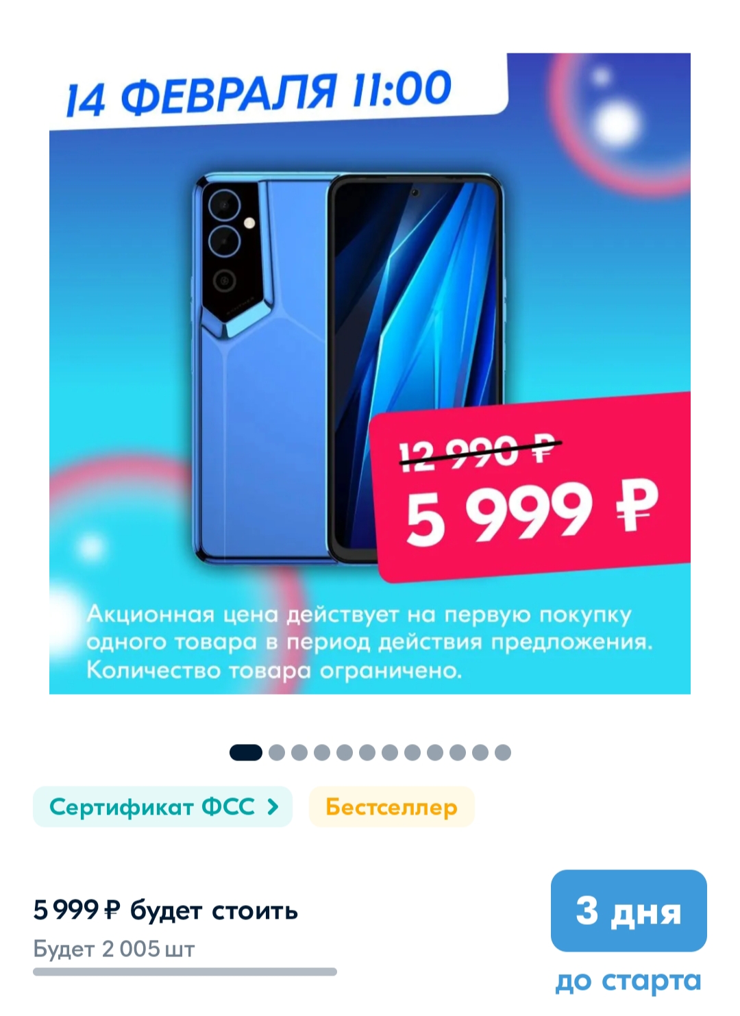 Tecno pova neo 2 на Озон 14 февраля обещают продать за 6000₽