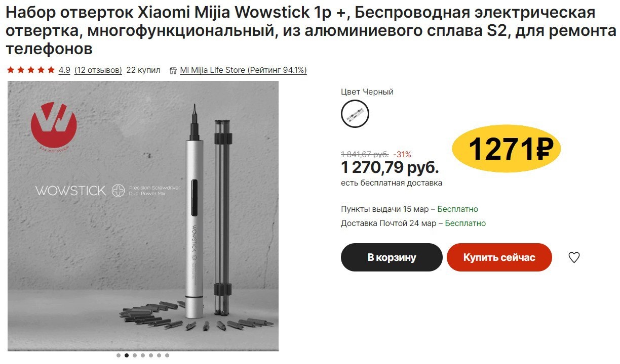 Электрическая отвёртка Xiaomi Mijia Wowstick за 1271₽