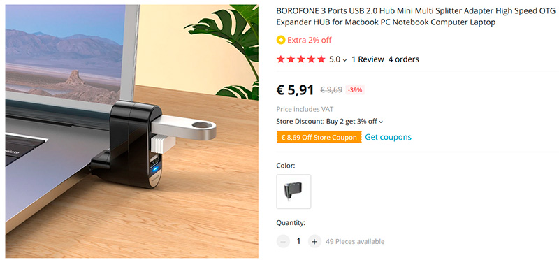 Сверхкомпактный поворачивающийся USB-хаб для ноутбука на три порта. Для порта USB-A. Заказал, у меня дома два ноутбука с такими портами, есть аналогичные хабы на два порта, и их не всегда хватает.