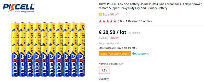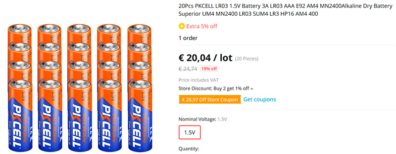 Купил недавно 10 щелочных ААА Panasonic за 4 евро. Не совсем понятно "выгодное предложение" 20 батареек за 20 евро.
