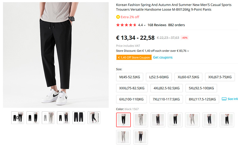 Полуспортивные брюки в корейском стиле. Для дома, для семьи. Черные, темно-серые, серые. По поводу размера - обязательно сверяйтесь с приведенной там таблицей: у меня обычный размер L, я себе по таблице заказал XXL (носить дома, люблю такие).
