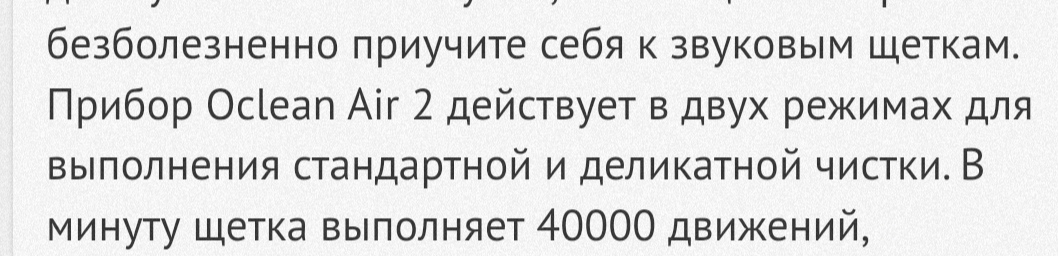 повёлся на эту джинсуху, купил soocas. Она хорошая. У неё "режимы". Я их переключал один раз - когда купил, чтобы посмотреть что она умеет. Больше от них пользы нет (для меня). Потом купил кому-то из домашних oclean air 2. У неё нет "режимов" (которые я не использую), она в 2 раза легче и в три раза изящнее soocas'а. Теперь мне кажется, что именно она - полный идеал, теперь всем в подарок покупаю oclean и сам бы её использовал, но не выбрасывать же имеющийся, как вы говорите, сукас 😄. А, да, он у меня не топовый, без приложения - наверное, было полезно увеличить интервал. А в остальном рекомендую oclean. Если, конечно, кому-то, как и мне, не надо щёлкать режимами.
