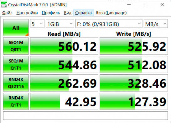 А вот то, что я сам измерил на моем терабайтном диске, причем у меня скорости получились даже быстрее, чем заявлял производитель.