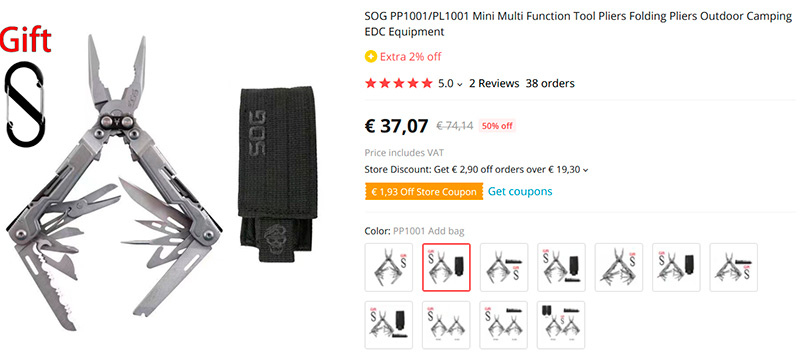 Продвинутый мультитул (кинуть в машину, держать под руками дома) - всегда полезная штука. Мультитул от известного производителя SOG PP1001: 17 инструментов, разные варианты комплектации, включая чехол и набор бит.