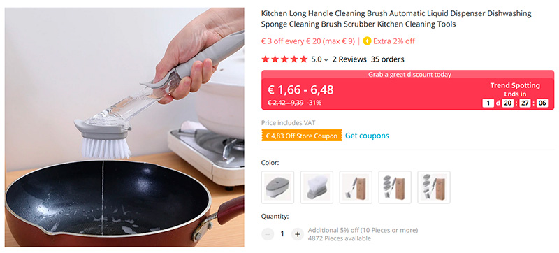 Удобная какая штука - щетка/губка с диспенсером моющего средства. В ее прозрачный контейнер заливается чистящее средство, вы кнопкой подаете это средство в посуду (сковородку, кастрюлю), после чего моете ее. Это значительно удобнее, чем сначала наливать средство из емкости, а потом мыть губкой. Две насадки: щетка и губка.