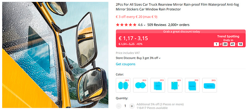 Набор автомобильных антизапотевательных пленок. Клеятся на зеркала заднего вида и на область боковых стекол, через которые вы смотрите на боковые зеркала. После этого никакое запотевание не страшно.