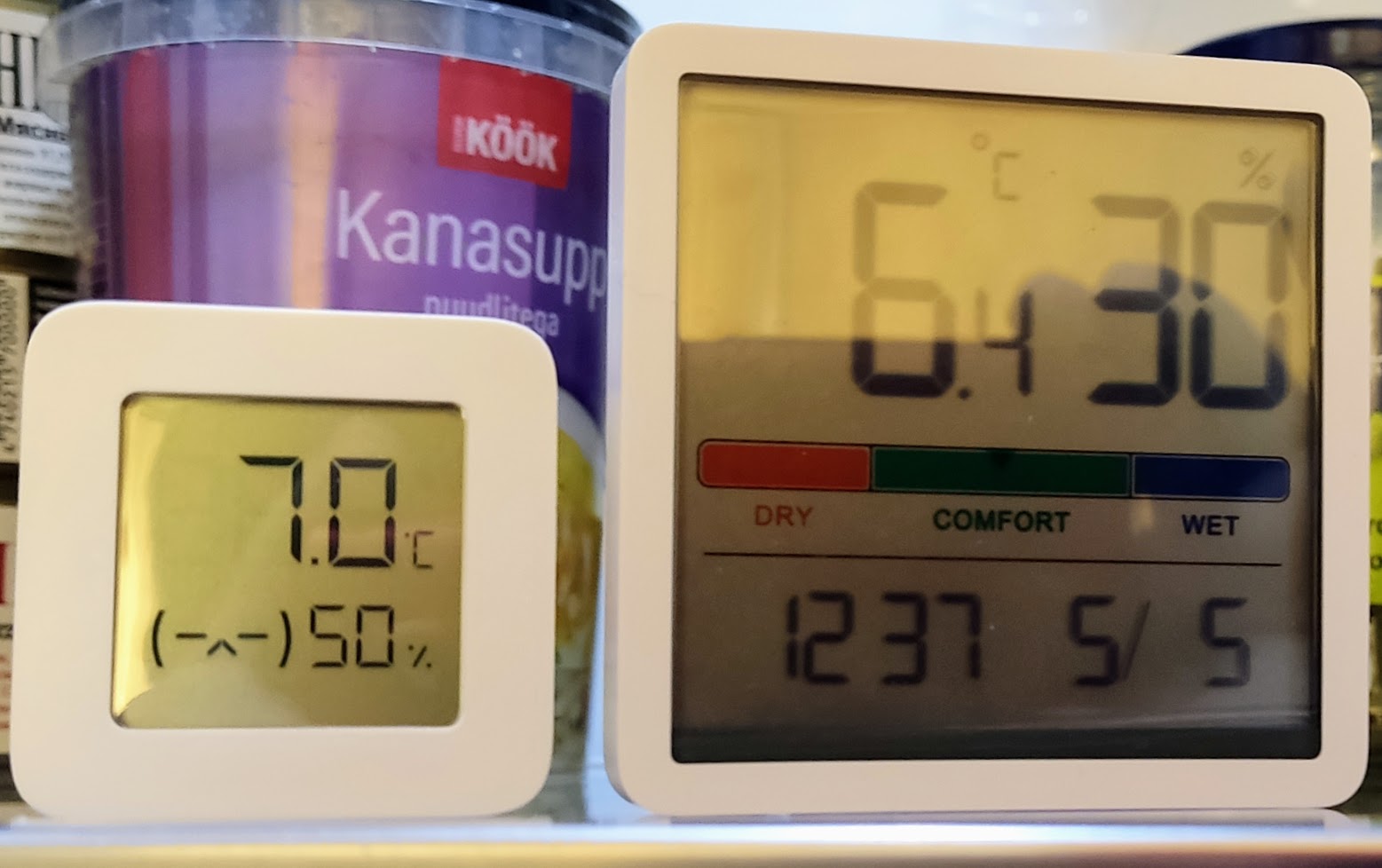 Снимок сделан на полке холодильника, оба прибора там стояли несколько часов перед снимком