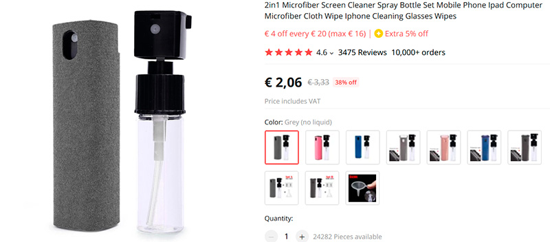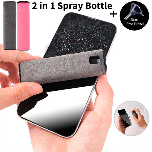 Штука копеечная, но при этом очень полезная: протирка для экранов смартфонов/планшетов. Емкость с чистящей жидкостью, снабженная распылителем, помещена в футляр, покрытый микрофиброй, которая и служит салфеткой для протирки жидкости после распыления.