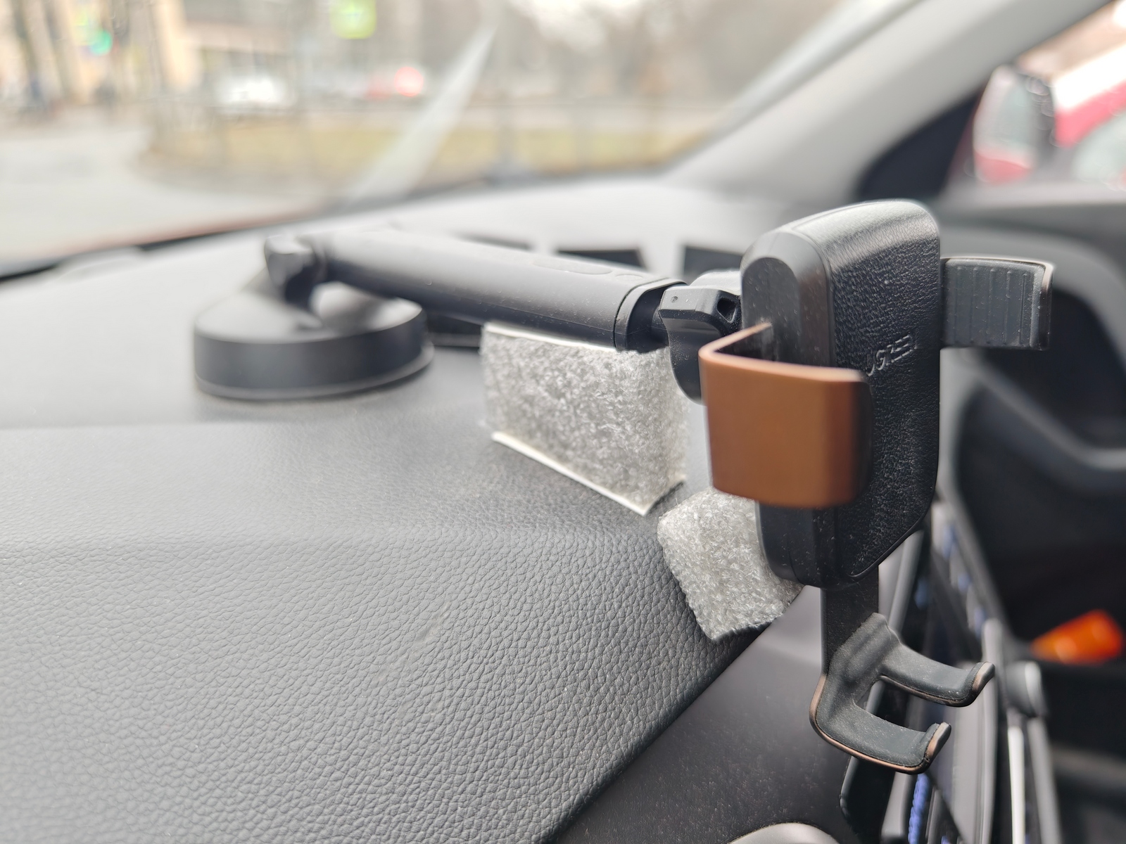 Вы таки будете смеяться, но я тоже пришёл к такому решению. Правда колхозно, но идея витала в воздухе - вместо того, чтобы раздалбывать телефон и крепление на кочках, приклеить "ногу" держателя к торпеде.