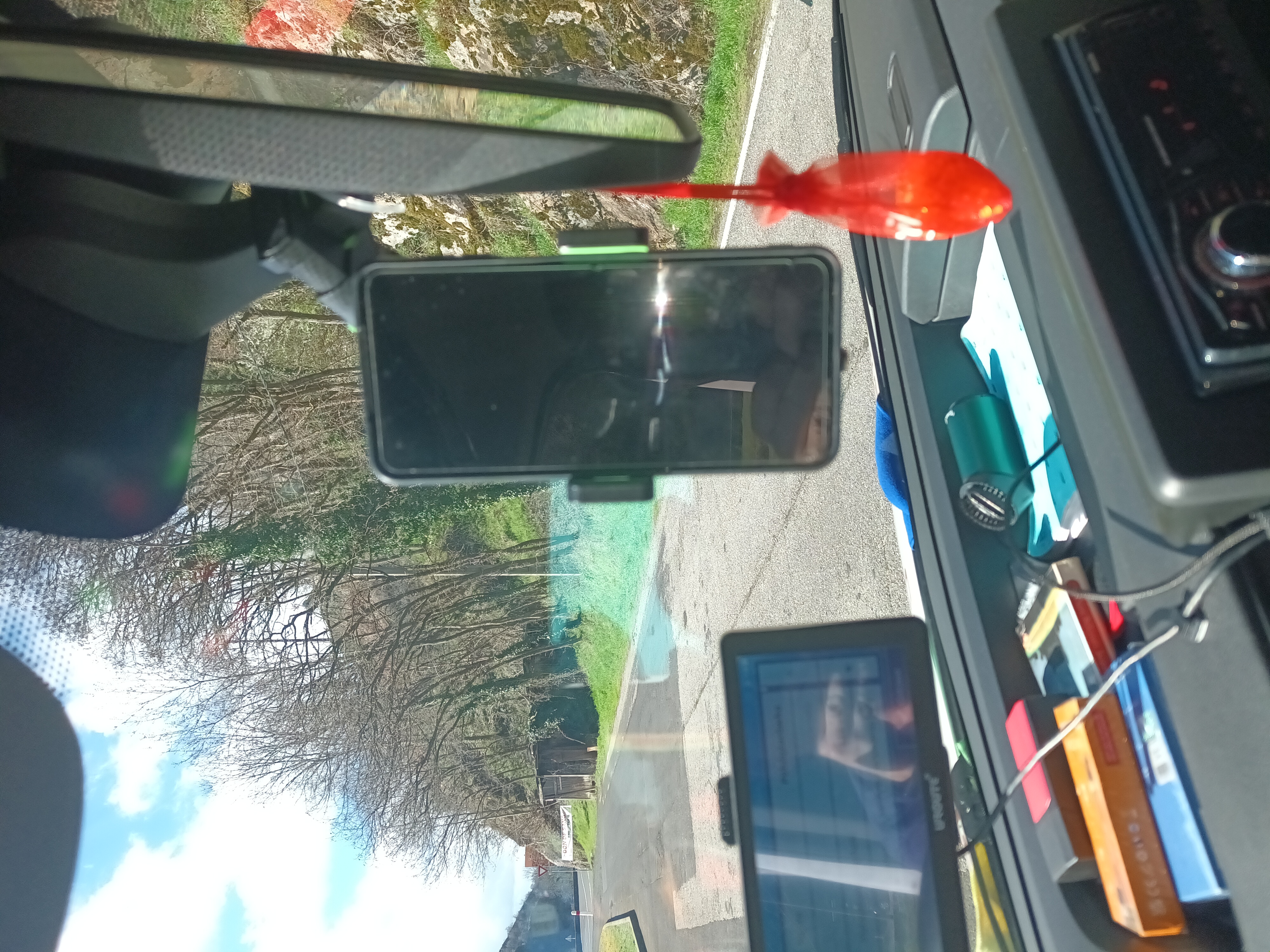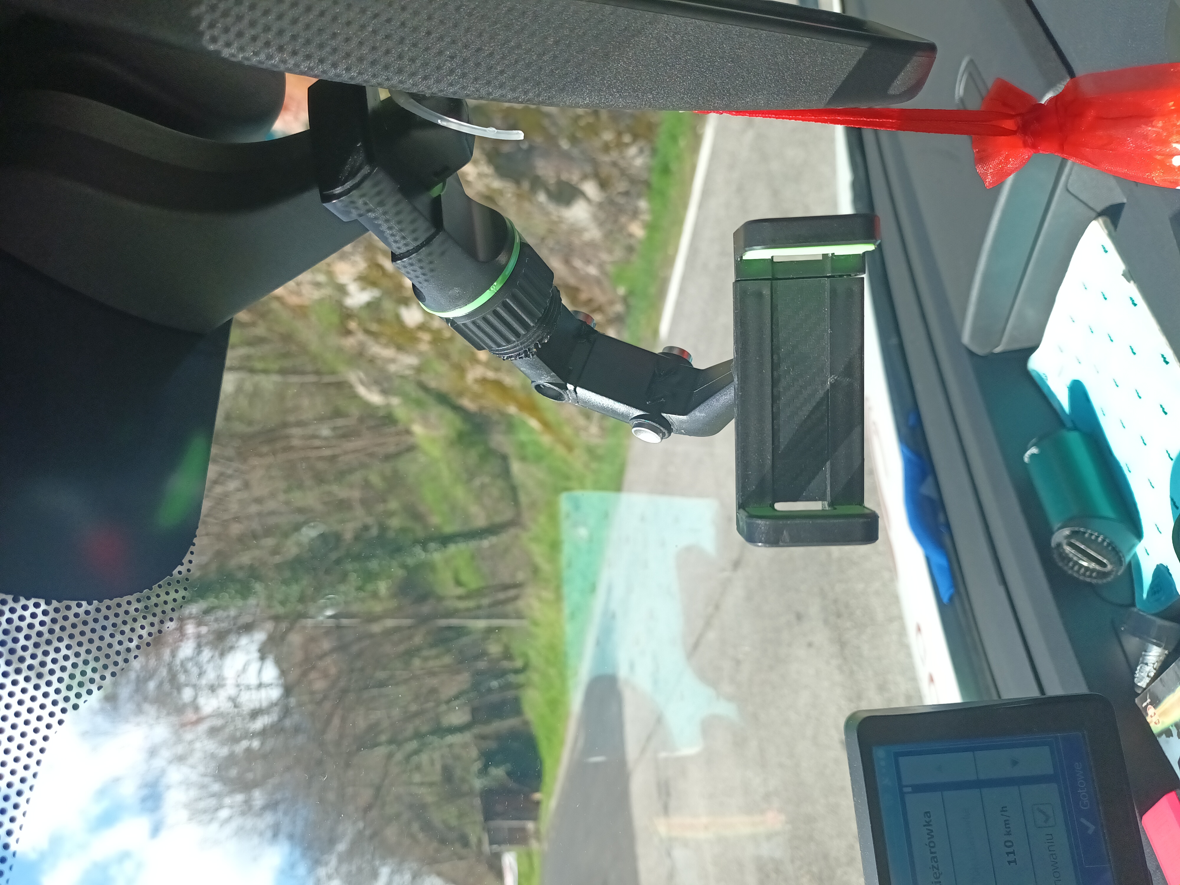 У меня вот такой вариант. Телефона два - рабочий и служебный. Вот первый, для личного телефона. Висит на зеркале, которое так странно повернуто, да 😄 У меня в машине заднего стекла нет. Брал за 11 злотых в китайском магазине, где-то 2.5 евро.