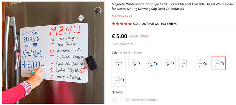 Не держатся в голове всякие важные домашние дела, которые нужно сделать? Отличный вариант решить эту проблему - простенькая магнитная пластиковая накладка на холодильник, к которой идут разноцветные маркеры для записей. После этого отчаянный призыв "Покорми Барсика, иначе он сожрет герань" у вас всегда будет перед глазами, так что Барсик вовремя будет накормлен. Разные варианты комплектаций, лучше всего заказывать с тремя маркерами и губкой - стирать написанное.
