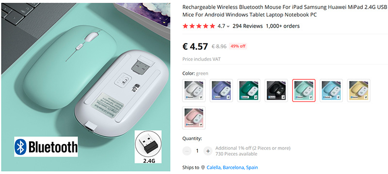 Простенькие дешевые мышки различных цветов, которые при этом поддерживают два вида подключения: по Bluetooth и по радиоканалу (через прилагаемый USB-донгл).