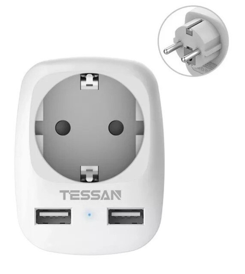Ну и по цене в 2 раза дешевле, чем Ugreen, есть еще старый добрый Tessan, которым я давно пользуюсь. Там 2 USB-A общей мощностью 12Вт.
