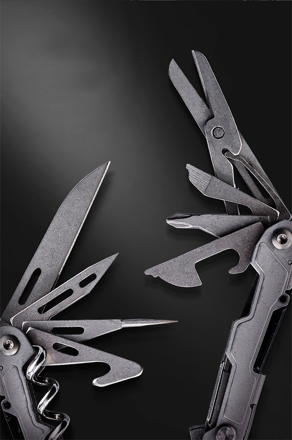 Продвинутый и очень компактный мультитул на основе пассатижей. 17 инструментов, в сложенном виде мультитул имеет размеры 8 х 2,5 см.