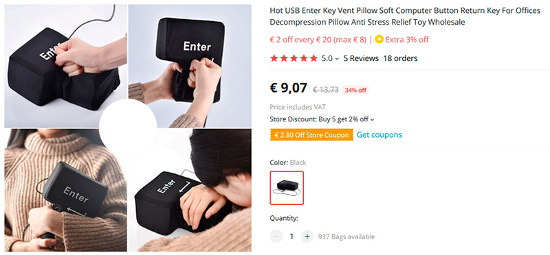 Бывает, знаете ли, когда что-нибудь разозлит настолько, что хочется изо всей силы трахнуть кулаком по клавиатуре. Но зачем же ломать клавиатуру, тем более на ноутбуке? Нужно просто купить вот такую кнопку-антистресс Enter, подключить ее к USB-порту и лупить по ней сколько угодно - она будет работать как обычный Enter. При необходимости на ней даже можно поспать - она мягкая.