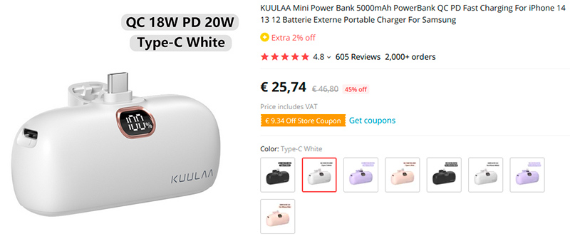 Внешние аккумуляторы периодически нужны, но при этом не хочется с собой таскать громоздкое устройство. Компания Kuulaa как раз для подобных случаев выпускает очень удобные сверхкомпактные аккумуляторы KUULAA Mini Power Bank, которые вставляются прям в порт смартфона. Емкость аккумулятора - 5000 мАч, поддерживается быстрая зарядка QC 18 ватт и Power Delivery 20 ватт. Есть дисплей, показывающий остаток заряда. Разные цвета, под Type-C и айфонный Lightning.