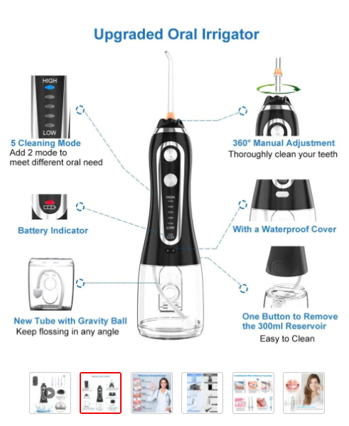 Горячо рекомендую US $20.98 63%OFF | Oral Irrigator USB Rechargeable Water Flosser Portable Dental Water Jet 300ML Water Tank Waterproof Teeth Cleaner