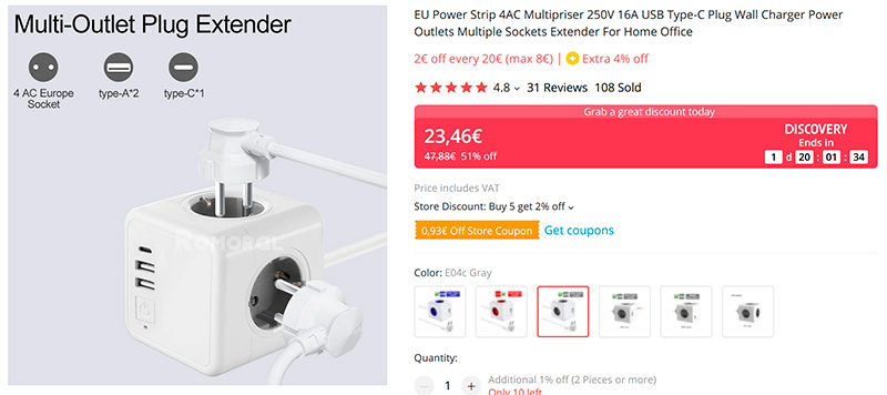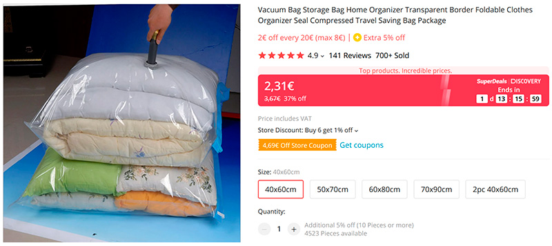 После применения всех скидок цена у меня получается US $41.61