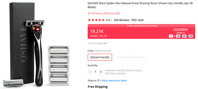 А бритва хорошая. Вот она на амазоне почти вдвое дешевле али: www.amazon.es