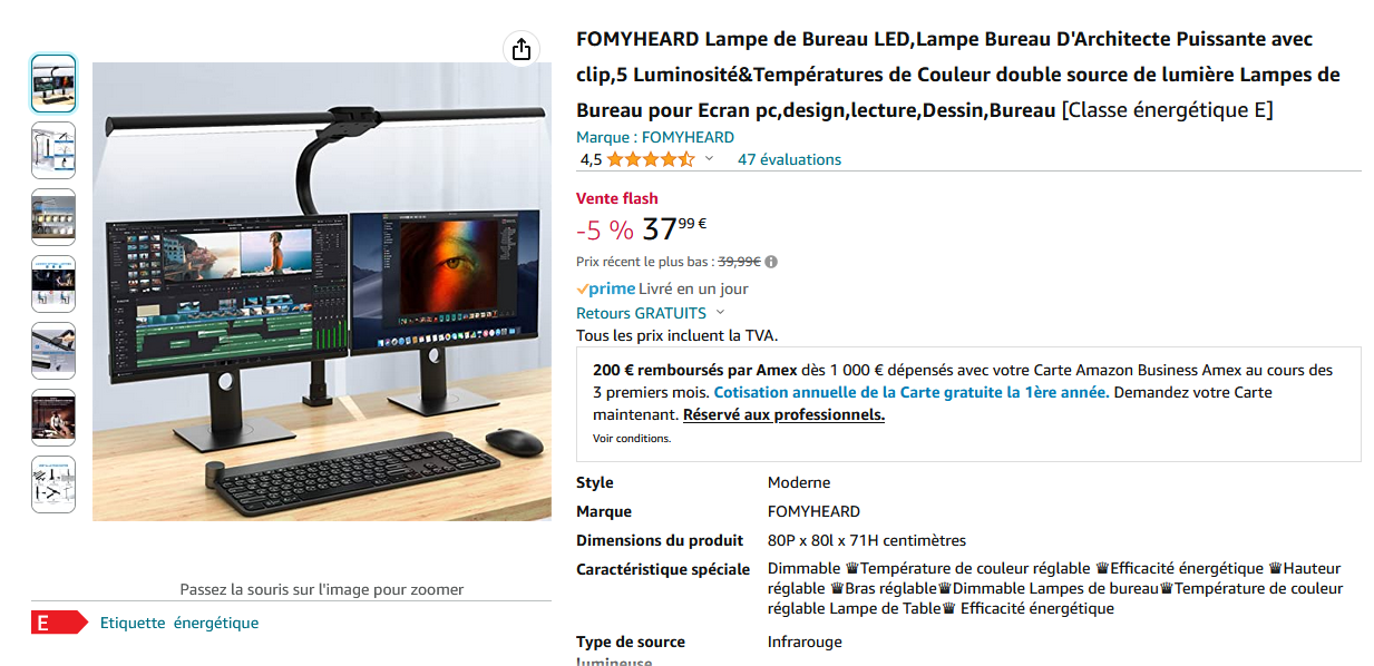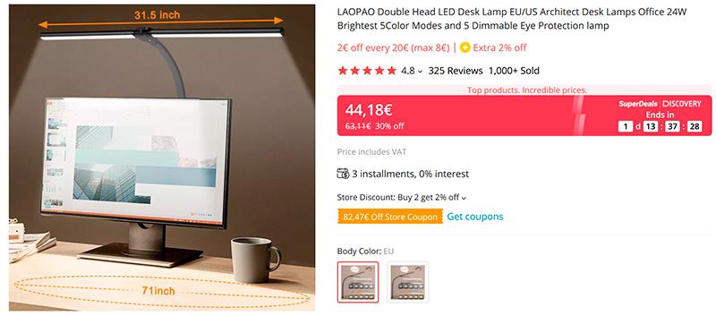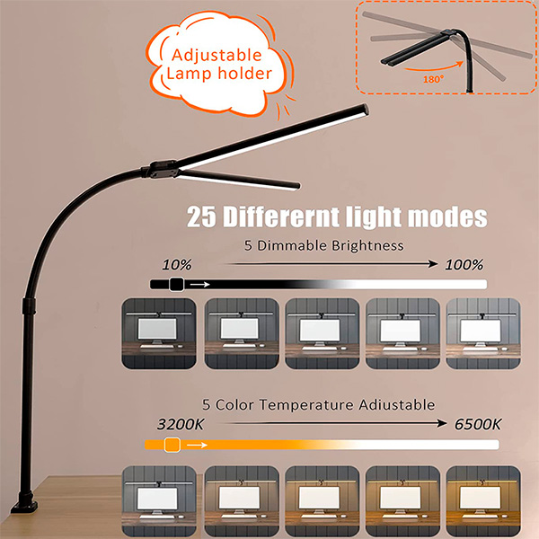 Большая настольная лампа, которая может по-разному конфигурироваться и настраиваться. К столу крепится с помощью струбцины. Может ставиться над монитором, может ставиться сбоку. Две светящиеся части лампы могут располагаться под разными углами. Пять уровней яркости, пять видов цветовой температуры.