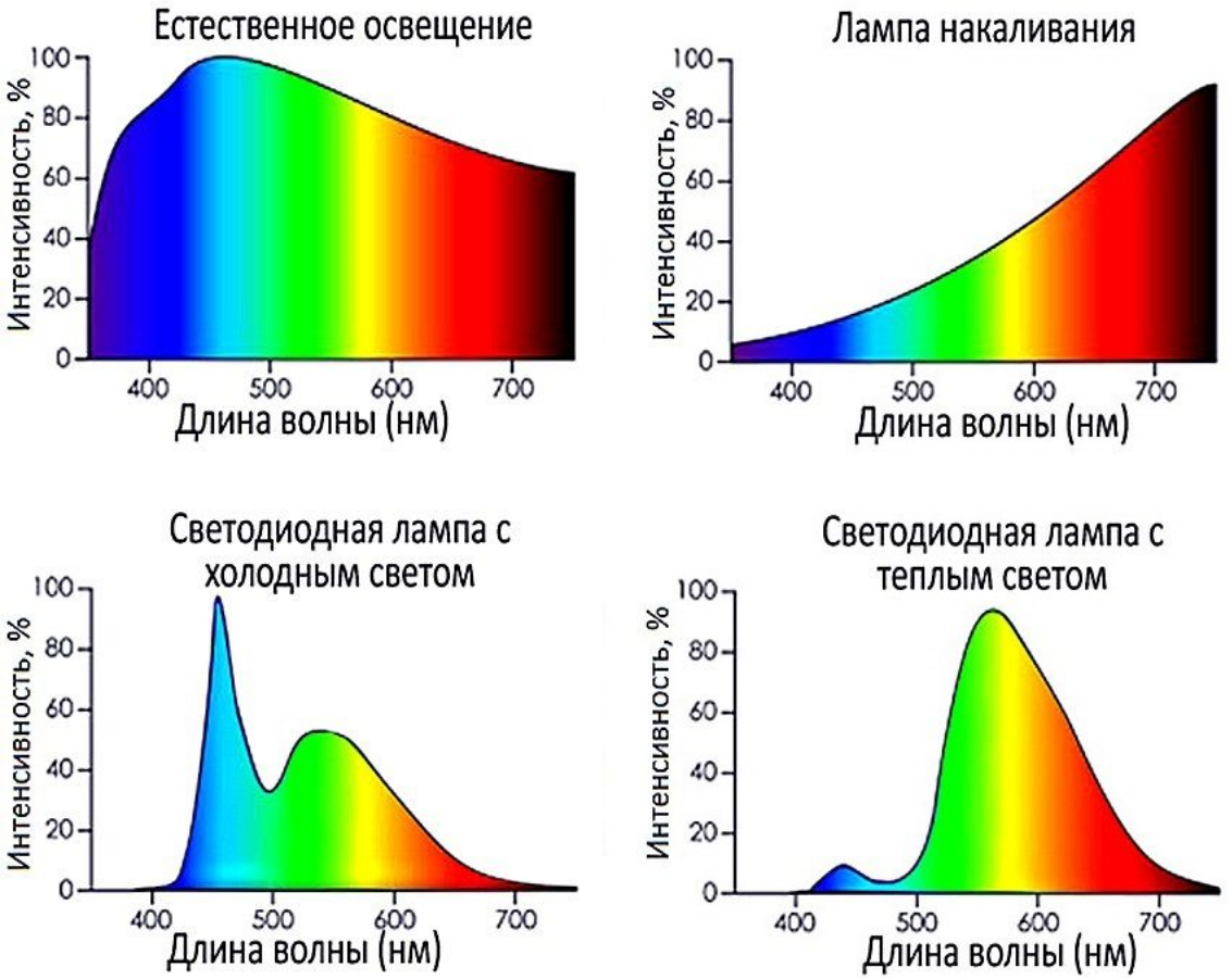 Кстати, светодиодная лампа потому и экономичнее лампы накаливания, что практически весь диапазон ее излучения находится в области спектра, видимого человеческим глазом.