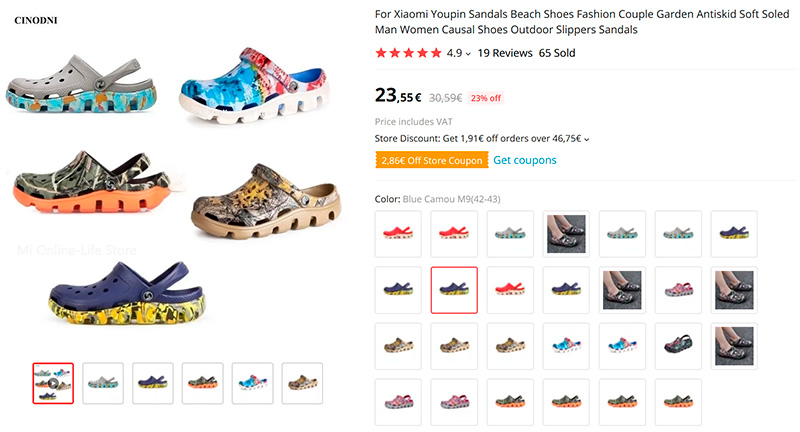 Как говорится, не кроксами едиными, тем более что оригинальные кроксы - штука довольно дорогая. Вот недорогие сандалеты подобного типа самых разных, иногда прямо-таки экзотических раскрасок.