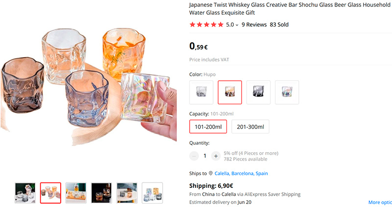 Вот такое я очень люблю - стаканы в японском стиле неправильной формы. Не обращайте внимания на несуразно низкую цену - там вся цена в стоимости доставки, на Ali такое бывает. Можно найти аналогичные по 8 евро, но с бесплатной доставкой. Заказал себе.
