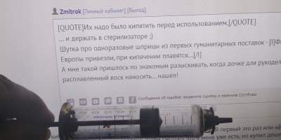 Шутка про одноразовые шприцы из первых гуманитарных поставок - Фигню какую-то из Европы привезли, при кипячении плавятся.