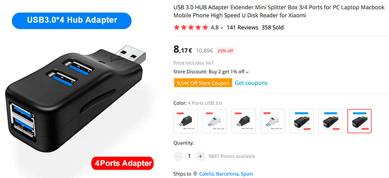 О какая классная штука для ноутбуков - четырехпортовый компактный хаб USB3.0. У меня вся семья пользуется аналогичными трехпортовыми (такие по ссылке тоже есть), а тут аж четырехпортовый.