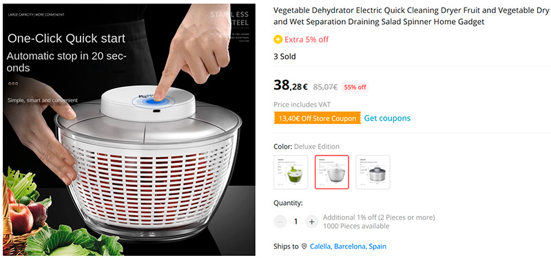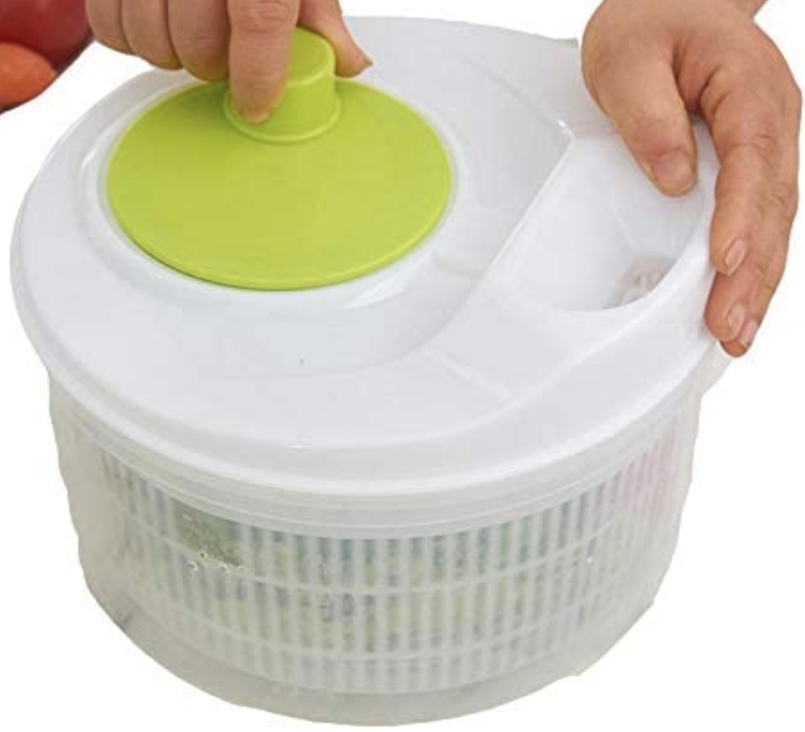 Любители листьев салата и свежих овощей знают, что это все нужно мыть (особенно листья салата, где могут скрываться всякие кацики), а после мытья с листьев и овощей нужно удалять капли воды. Это все можно делать с помощью бумажного полотенца, но намного удобнее для этого пользоваться специальной центрифугой, которая удаляет воду с листьев и овощей. У нас дома для этого используется ручная кухонная центрифуга, которая значительно облегчает и ускоряет процесс удаления воды, а я тут наткнулся на более удобный вариант - автоматическую центрифугу. Заказал, попробую ее в работе. Кстати, по ссылке механический вариант тоже есть, и он в два раза дешевле.