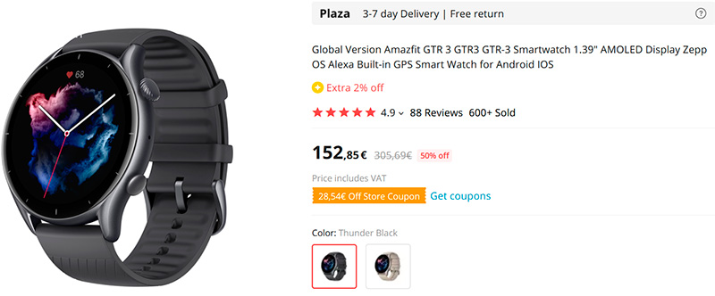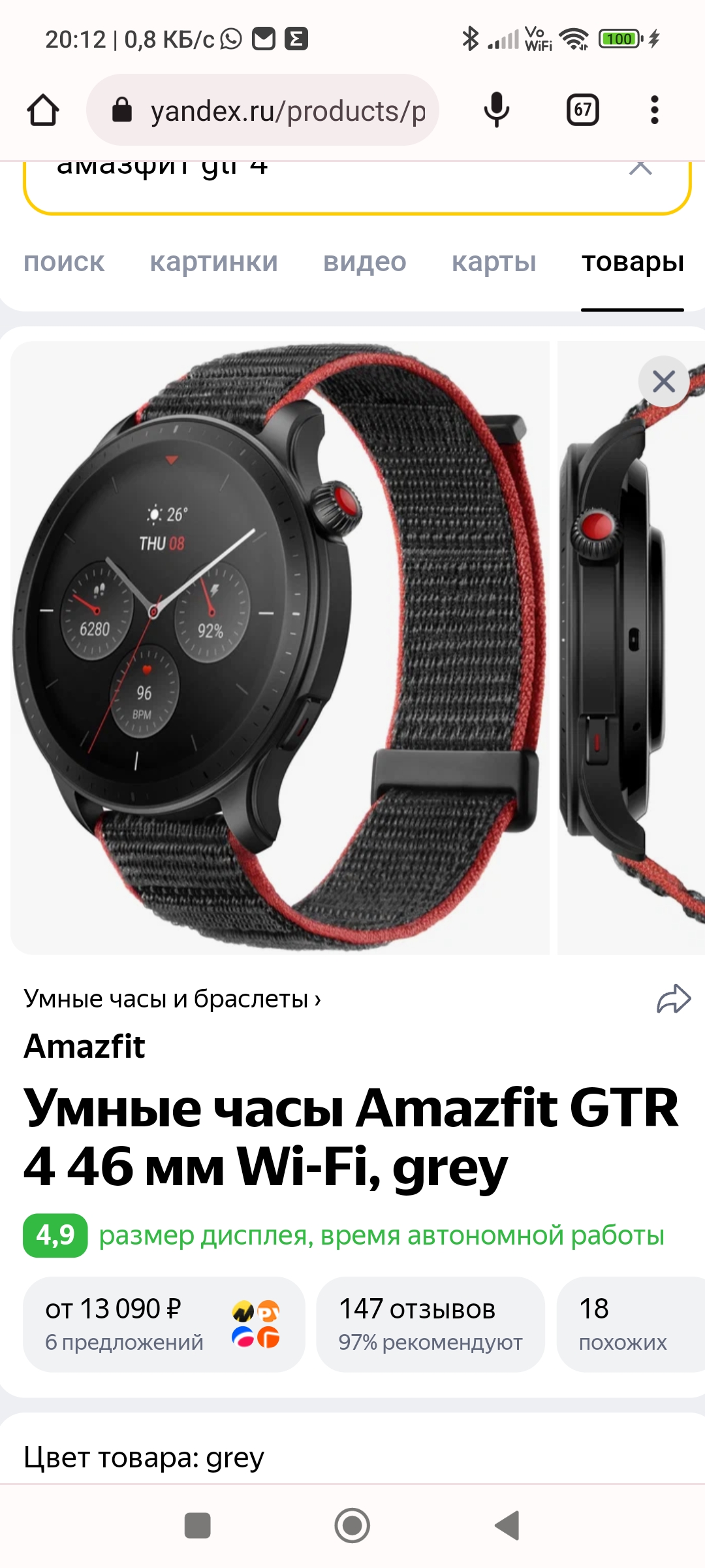 После выхода 4-й версии умных часов Amazfit GTR на предыдущую версию цена заметно опустилась, сейчас Amazfit GTR 3 можно купить за €152 (13 тысяч рублей), а это очень достойные умные часы (мой обзор версии Pro). Четвертая версия пока стоит совсем негуманно - аж €277