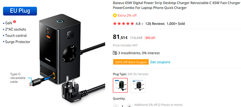Baseus какую прикольную штуку выпустили - это удлинитель под евророзетку с сенсорным выключателем, GaN-адаптер на 65 Вт для одновременной зарядки до трех устройств, также у него есть автоматически сворачиваемый кабель Type-C. Все компактно и элегантно, лишние кабели на столе не болтаются.