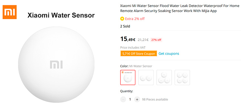 Необходимая в доме вещь - сенсор протечки воды от Xiaomi. Может присылать уведомление в приложение. Можно купить набор из 2, 3 или 4 устройств со скидкой.
