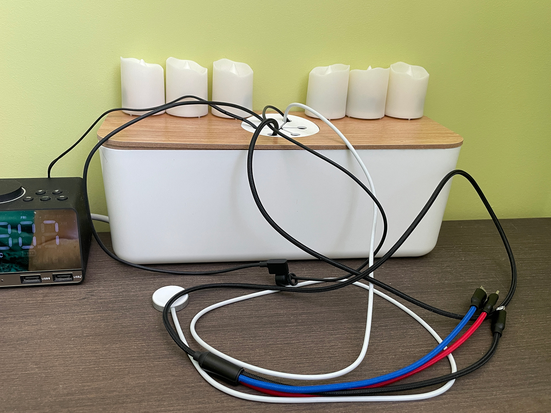 Получил коробку для удлинителя и зарядок, чтоб меньше бардака было. Брал меньшую, удлинитель Xiaomi туда отлично поместился.