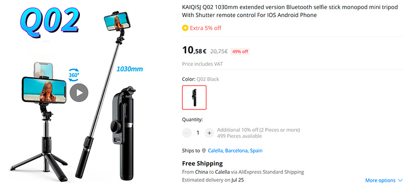Многофункциональное устройство: телескопический монопод (селфи-палка), он же подставка-трипод. Смартфон может располагаться горизонтально или вертикально, есть пульт удаленного управления под Bluetooth. Особенность именно данного устройства - оно очень компактно складывается для переноски: в сложенном виде занимает менее 20 см. Вес устройства - 190 г.