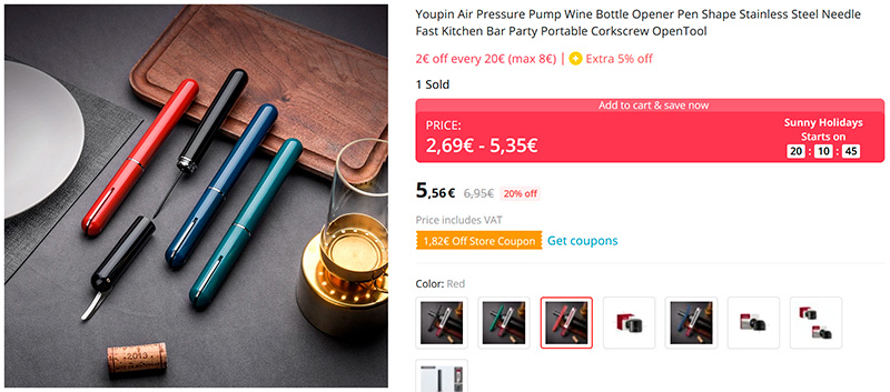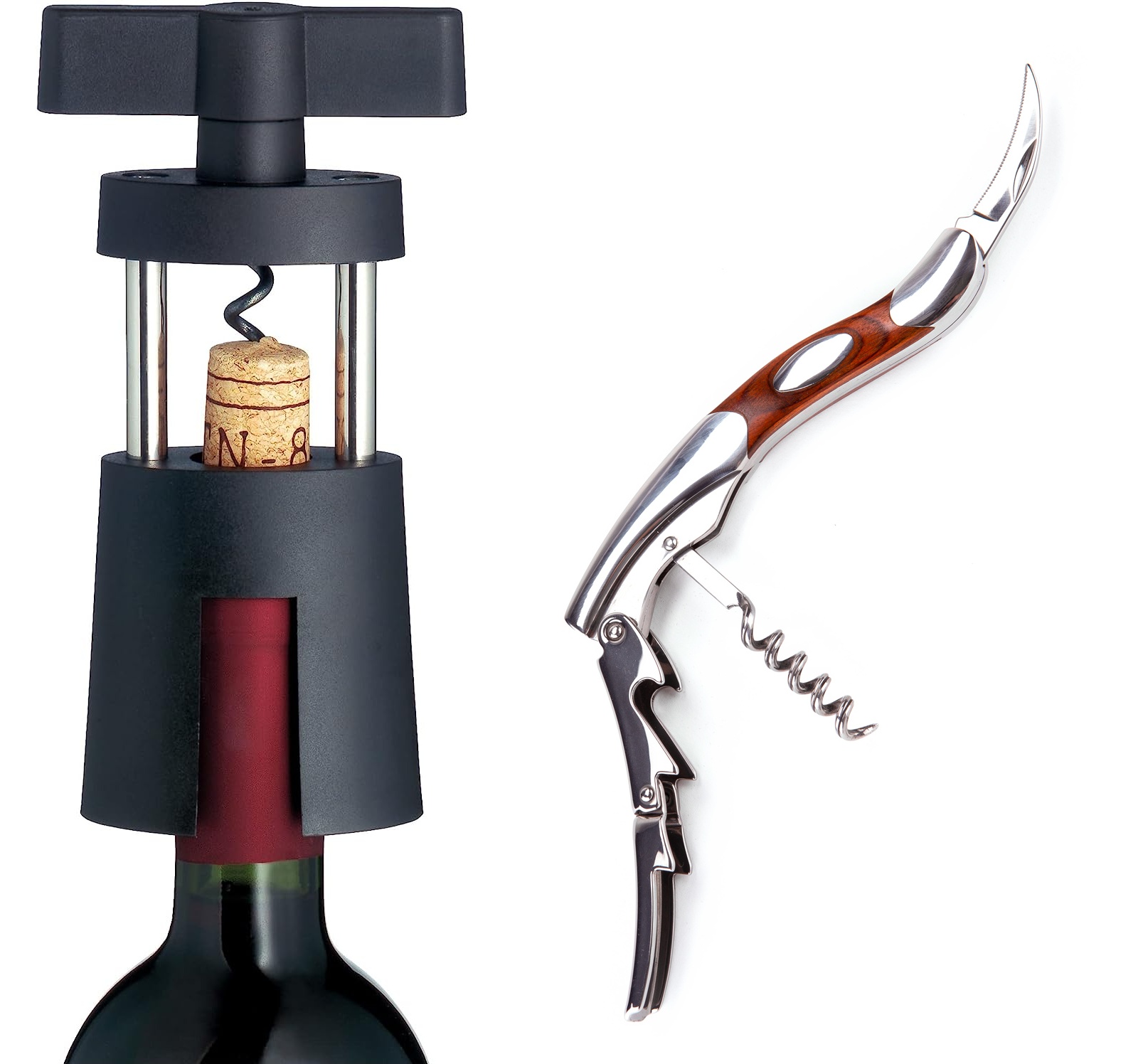 Пробочник с помпой, позволяющий вытащить любую пробку. Пробка протыкается иглой, пробочником накачивается воздух в бутылку, и пробка вылезает сама под давлением воздуха. Пробочник также снабжен ножиком для обрезания фольги на горлышке бутылки.