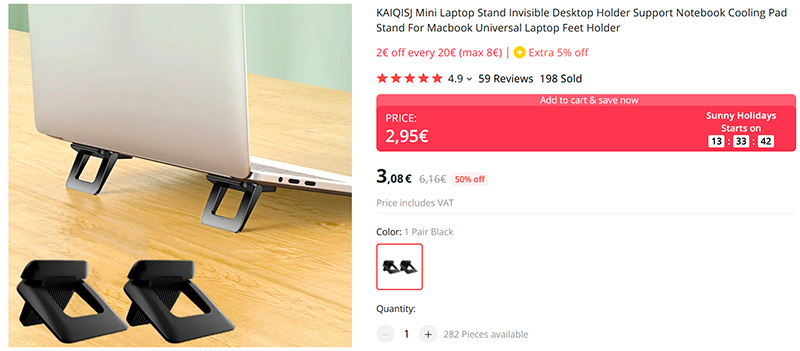 Ноутбук нередко хочется поставить на столе под небольшим углом: так и печатать удобнее, и решается проблема с перегревом, потому что устройство охлаждается заметно лучше. Для этого существуют, например, вот такие специальные алюминиевые подставки (мы с женой именно такие и используем), но если хочется совсем просто и дешево - то можно использовать вот такие совсем дешевые подставки, которые просто приклеиваются к корпусу ноутбука, и их при необходимости легко можно открыть, увеличив угол, или закрыть.