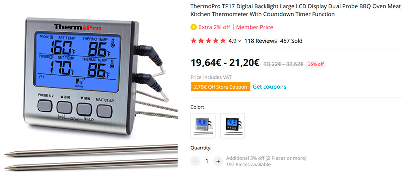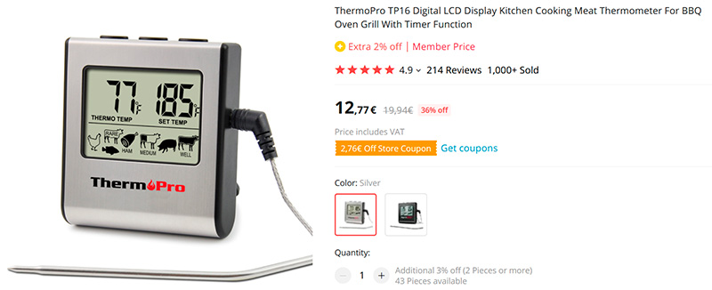 Ещё добавлю слова поддежки кухонным термометрам ThermPro. У меня самая навороченная )) для крупной готовки, плюс все-таки советую их ручные с раскладным щупом - например стейк пожарить разворачивать всю дуру с проводами мало смысла.