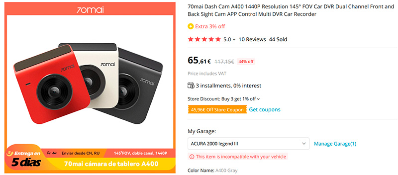 Очень компактный и недорогой видеорегистратор от хорошего производителя - 70mai Dash Cam A400. Разрешение QHD (2560 × 1440), угол обзора 145°, экран 2", модуль GPS, подключение к приложению через Wi-Fi, ночная съемка, экстренная съемка при выключенном двигателе, несколько вариантов комплектации, включая заднюю камеру.