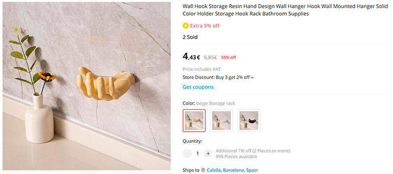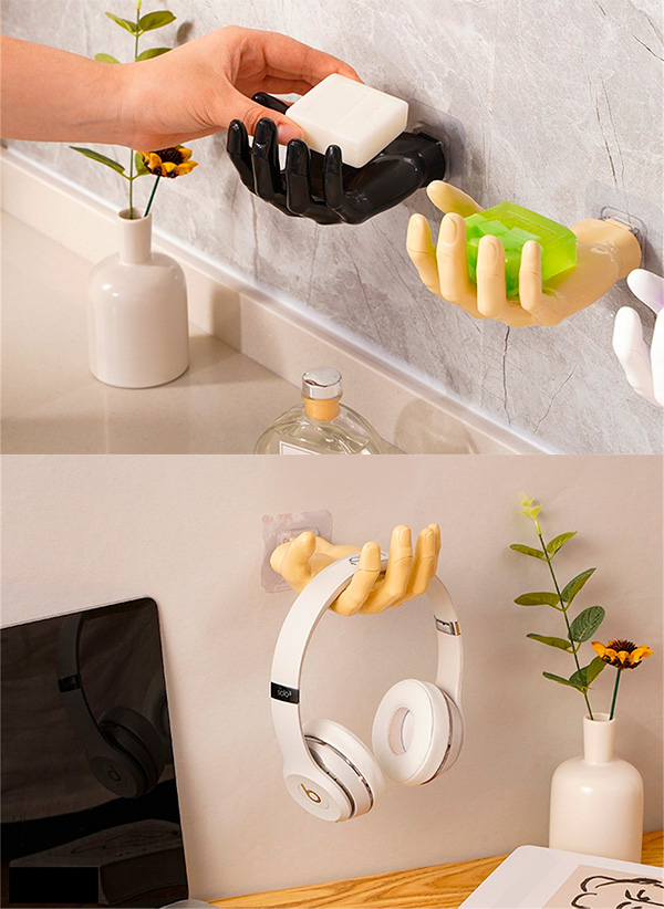 Настенный держатель в виде руки. Выглядит очень забавно. Можно использовать как держатель для наушников, украшений, для мыла (на кухне и в ванной). Три варианта цветов.