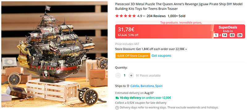 Надоели всякие Лего и деревянные конструкторы? Пора переходить на металлический конструктор - модель пиратского корабля "Месть королевы Анны".