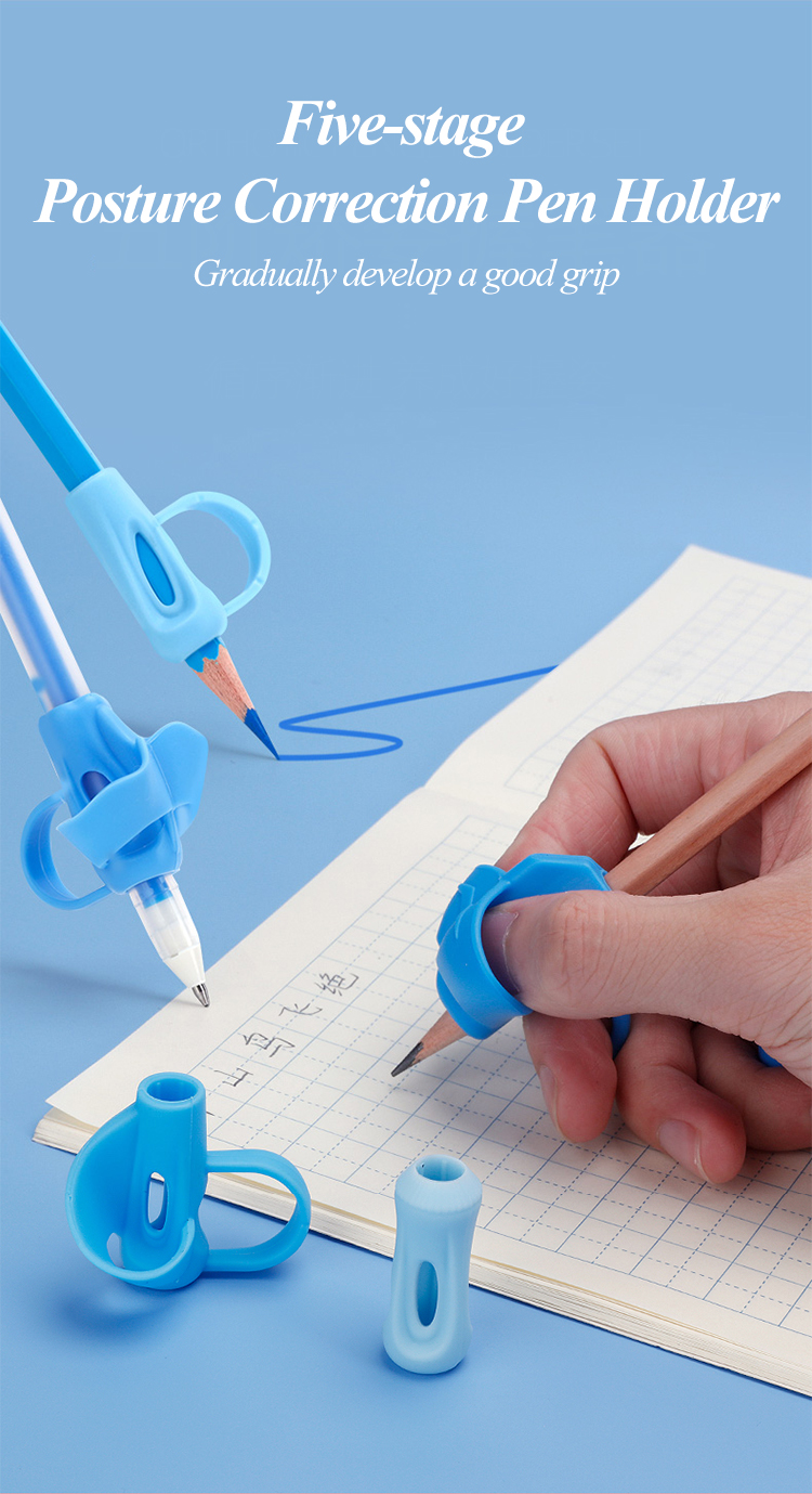Хочу поделиться ссылкой на очень полезный набор для первоклассников или тех, кто хочет исправить почерк/скорректировать постановку пальцев при письме. Это набор тренажеров, которые нужно использовать по очереди. Они приучают ребенка правильно держать ручку, постепенно переходя от полной фиксации до лёгкого обозначения захвата. В наборе 5 силиконовых тренажеров, приходят в коробке с инструкцией, все ясно-понятно. Эти насадки однозначно лучше всяких рыбок/корзинок, проверено эмпирическим методом. Плюсом также является то, что всегда можно вернуться к более сложному, если ребенок со временем снова не фиксирует руку правильно. Но рекомендую просто не спешить с переходом на упрощённые насадки.