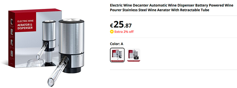 Электрический быстрый аэратор он же диспенсер для вина. Из всего, что у меня из этой серии есть, а это где-то с десяток разных устройств, данный - просто лучший, использую только его. Он еще и батареек не требует, заряжается через microUSB.