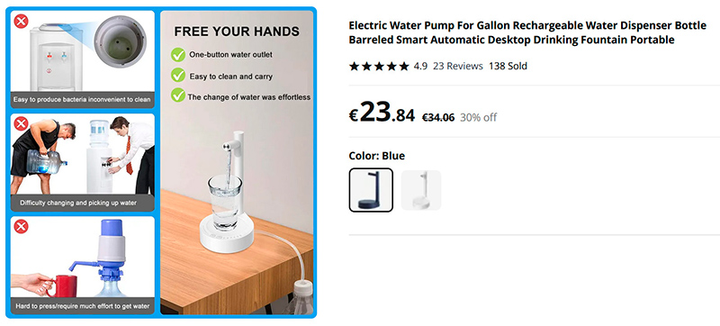 Несколько видов электрических дозаторов для больших бутылей с водой. На аккумуляторе, подзаряжаются через USB-порт.
