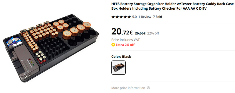 Я уже давал ссылку на органайзер для батареек, но ее и повторить не грех: только с помощью этого органайзера я навел полный порядок с батарейками в ящике, а ведь раньше батарейки лежали беспорядочной кучкой, и с этим было связано немало проблем. Кроме того, тут в комплект еще и входит тестер для батареек - не такой удобный, как вот этот, однако пользоваться вполне можно, если что.