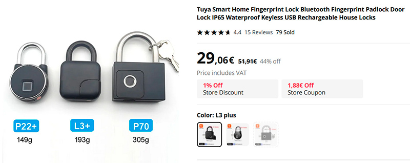 Навесные замки для различных применений (шкафчики, велосипеды, чемоданы), которые открываются ключом, отпечатком пальца или через приложение. Выдерживают вес до 500 кг, водонепроницаемые.