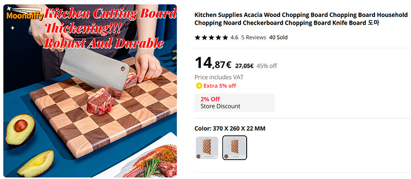Если нужна доска именно из конкретного редкого типа древесины, я б всё-таки из местных специализированных ресурсов заказывал, а не на алишке. Плюс эпоксидка, которой покрыта доска с алишки... не знаю, как у нее с пищевой безопасностью. На Этси народ торгует всякой экзотической древесиной. Правда, не знаю, чего она в себя впитала, прежде чем дошла до потребителя. По-любому, в Китае больше впитала.