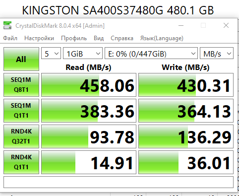 скорости примерно такие (бокс из лота по ссылке + KINGSTON SA400S37480G 480.1 GB)