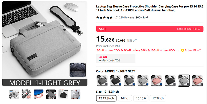 Хороший выбор удобных и компактных сумок для ноутбуков различных размеров и трех цветов. Для ноутбуков с диагональю 12-13.3", 14", 15-16.6" и 17.3". Сумку можно носить за ручки и на плече, она водонепроницаемая, выполнена из очень плотного материала, также внутри сумки содержится специальный слой, гасящий даже сильные удары. И у нее есть специальный ремешок, позволяющий закрепить сумку на ручке чемодана.