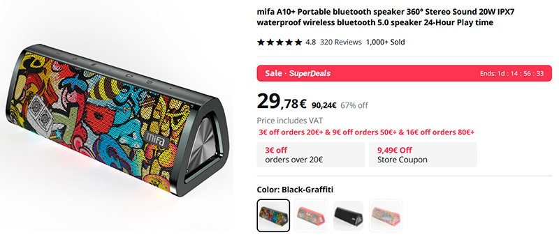 Хорошая и недорогая беспроводная колонка Mifa A10+. Влагозащита, мощность 20 Вт, время автономной работы до 24 часов, вес - порядка 500 г, несмотря на солидный аккумулятор. Кодеки SBC и AAC, поддерживает карту памяти, с которой может воспроизводить форматы MP3, FLAC, APE. Если не нравится яркая расцветка, то там есть и строгий черный вариант.